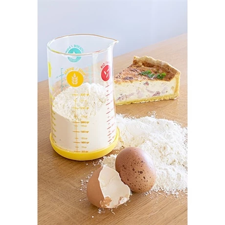 En verre borosilicate, ce verre mesureur est très résistant aux chocs et passe au micro-ondes et au réfrigérateur.