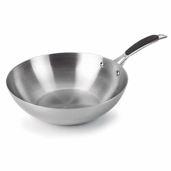 Ce Wok trimetal inox 28 cm est idéal pour la cuisson de vos légumes, viandes et autres aliments. Design, cet ustensile en inox 18/10 il est doté de la technologie Trimetal et est donc composé de trois couches offrant une répartition optimale de la chaleur à l’extérieur et dans le noyau et permettant un nettoyage facile. La cuisson de vos aliments sera donc uniforme et permettra d’économiser l’énergie lors de la cuisson. La poignée en acier inoxydable est recouverte d’une protection thermique pour faciliter la prise en main.
