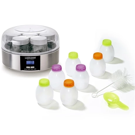 Pour un rangement plus simple de vos couvercle, LAGRANGE à mis au point un système permettant d’emboiter les couvercles des pots les uns dans les autres près de l’appareil. La yaourtière est également programmable jusqu’à 15H. L’appareil est aussi équipé d’un écran électronique rétroéclairé.